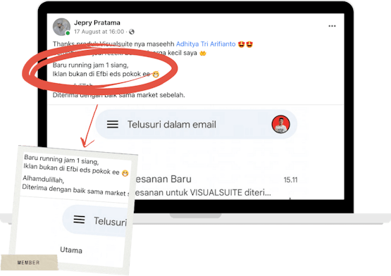 Nah ini ada salah satu member saya, yang beli produk saya dan jualan template canva. Eh, baru sejam running iklan, langsung closing. EDAN!