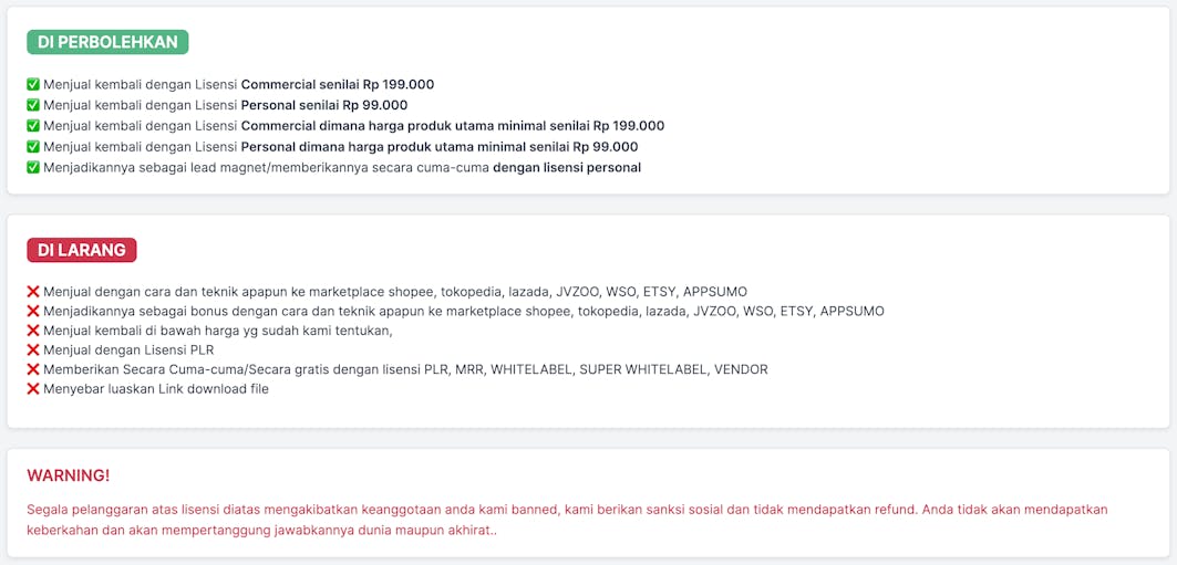 Jika Anda membeli paket PLR License, maka anda di perbolehkan untuk menjual kembali produk ini kepada orang lain